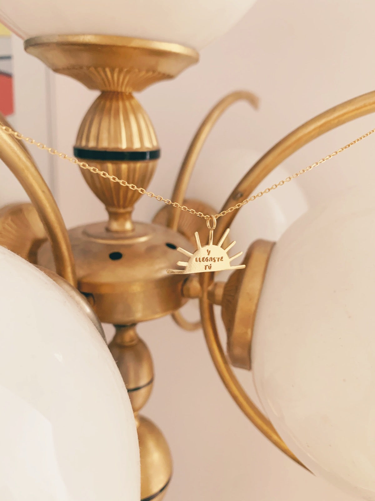 Colgante diseñado por Pablo Little edición limitada de 50 unidades. Hecho a mano en latón y baño de oro 18 kilates y con cadena incluida (55 cm diámetro)
